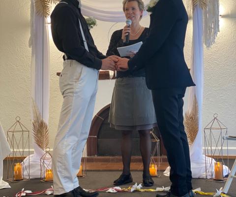 So verliebt, hei sich die zwöi dörfe ihri Liebesgschicht nomau alose, hei sich ihri Liebeserklärig mit viu Gfühl vortreit und ig ha ihne ds JA-Wort entlockt. Drufabe hei si sich ihri Ringe agsteckt und sich töiff i d Auge gluegt. I ha mi mega gfröit mis Trau(m)paar z begleite. Mit vile glänzige Seifeblattere hei mir die zwöi verabschidet.